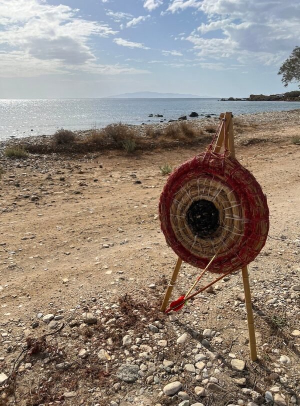Discover the ancient art of instinctive archery in an open field with breathtaking sea views.